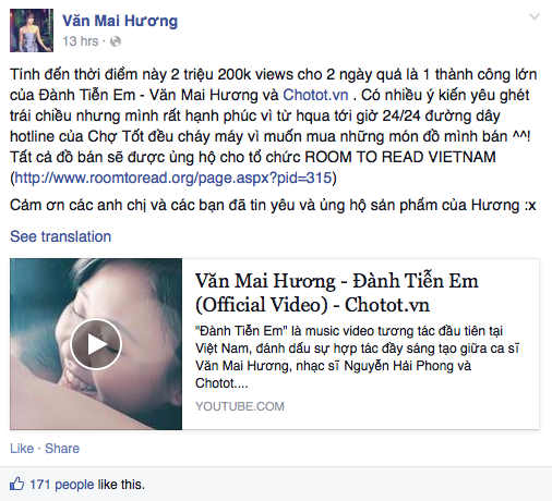 Về phía Văn Mai Hương, nữ ca sĩ cũng không giấu được niềm vui khi đã tìm được chủ nhân mới cho những món đồ cưng và không quên gửi lời cảm ơn đến khán giả hâm mộ.