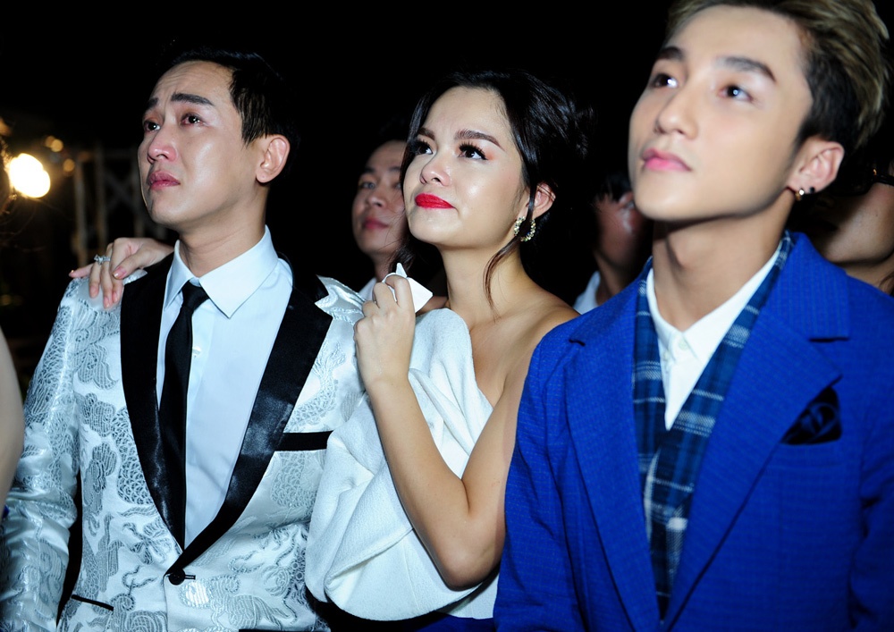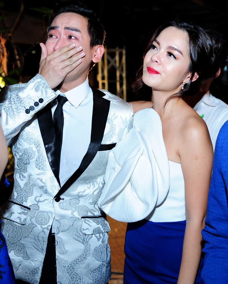| Nam diễn viên ôm Phạm Quỳnh Anh khóc nức nở trong buổi công chiếu. |