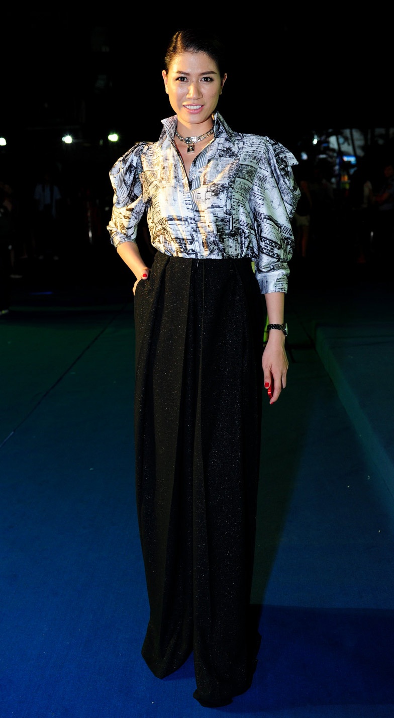 | Trang Trần diện trang phục cá tính đi xem phim. |