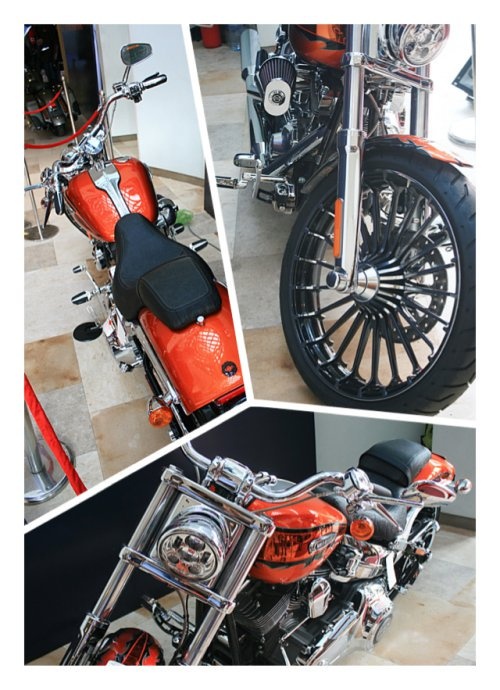 CVO Breakout 2014 có 3 màu sơn: xám đen, xanh da trời và màu cam. Mâm đúc hợp kim nhôm kiểu dáng mới với bề mặt mỗi cánh mâm đều được mạ crôm bóng loáng.
