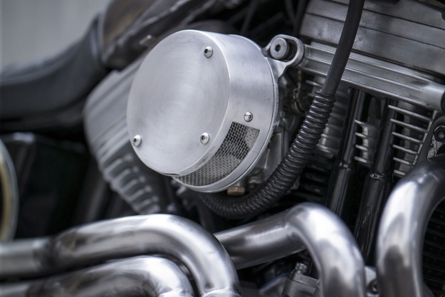 | Tuy nhiên, những phong cách trên không còn lạ, nên Benjie đã quyết định tạo ra một chiếc xe mới theo phong cách scrambler. Người thợ độ này đã chỉnh sửa ngay thiết kế quen thuộc của dòng cruiser, loại bỏ kiểu yên thấp và tay lái cao. |