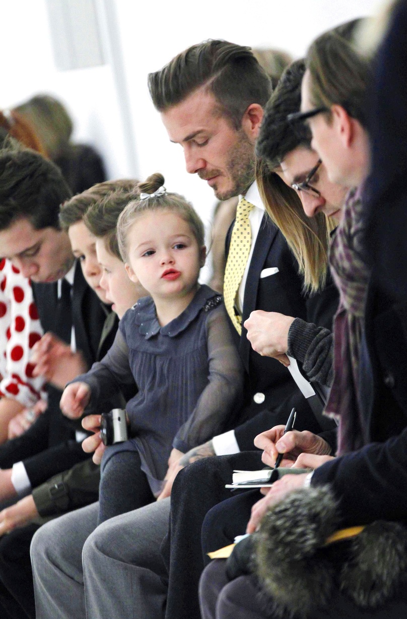| Harper luôn có mặt trên hàng ghế danh dự khi mẹ ra mắt BST thời trang với một phong cách rất tự tin, đáng yêu. |