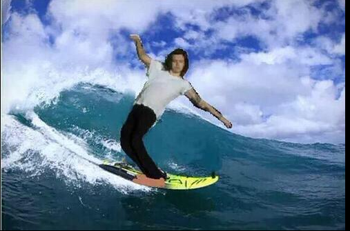 | Một fan chế thành ảnh Harry đang lướt sóng. |