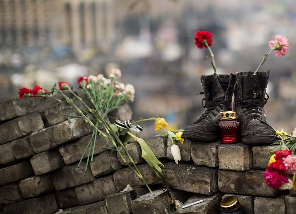 Những bông hoa tưởng nhớ người đã khuất. Đụng độ ác liệt giữa cảnh sát chống bạo động và người biểu tình từ ngày 18/2 đến 20/2 khiến hàng chục người chết và hàng trăm người bị thương. Ảnh: AP.