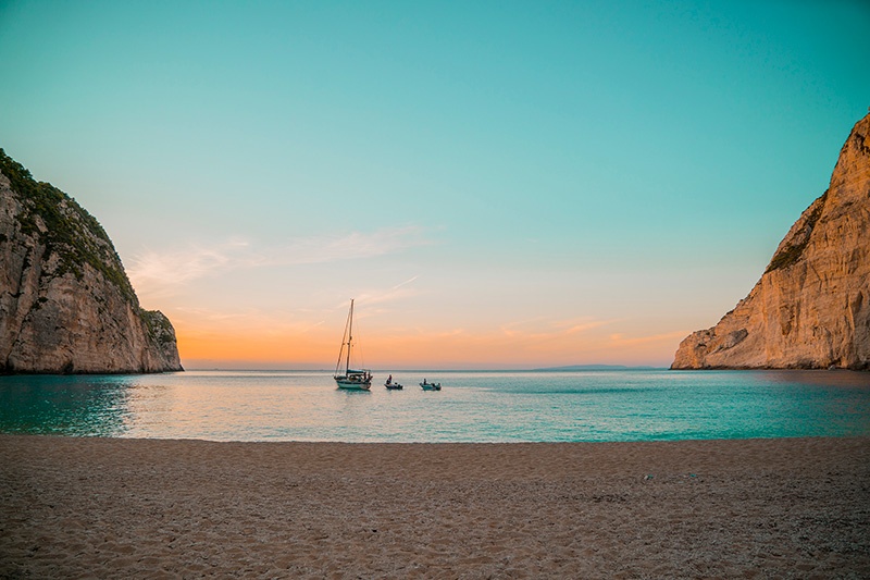 Bãi Tàu Đắm (Navagio) là một điểm quay phim của Hậu duệ mặt trời. Nhà biên kịch Kim Eun-sook có cảm tình đặc biệt với hòn đảo và bãi biển này trong một chuyến đi trước đó. Ảnh: Unusualplaces. |