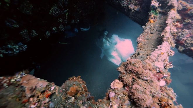 Để có những bức ảnh thời trang đẹp lung linh, huyền ảo bên xác tàu đắm tại Bali, người mẫu phải lặn dưới độ sâu hơn 25 m nhưng không được mang theo bình dưỡng khí.