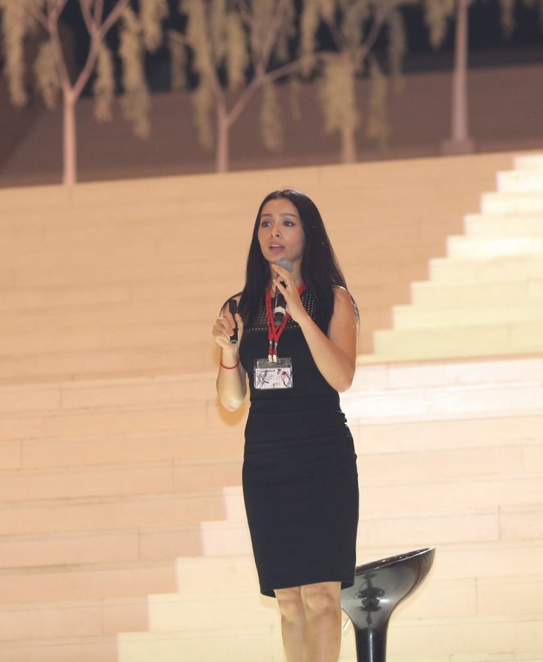 | Đạo diễn catwalk - người mẫu Thúy Hằng - hướng dẫn các người mẫu tập dượt trước chương trình. |