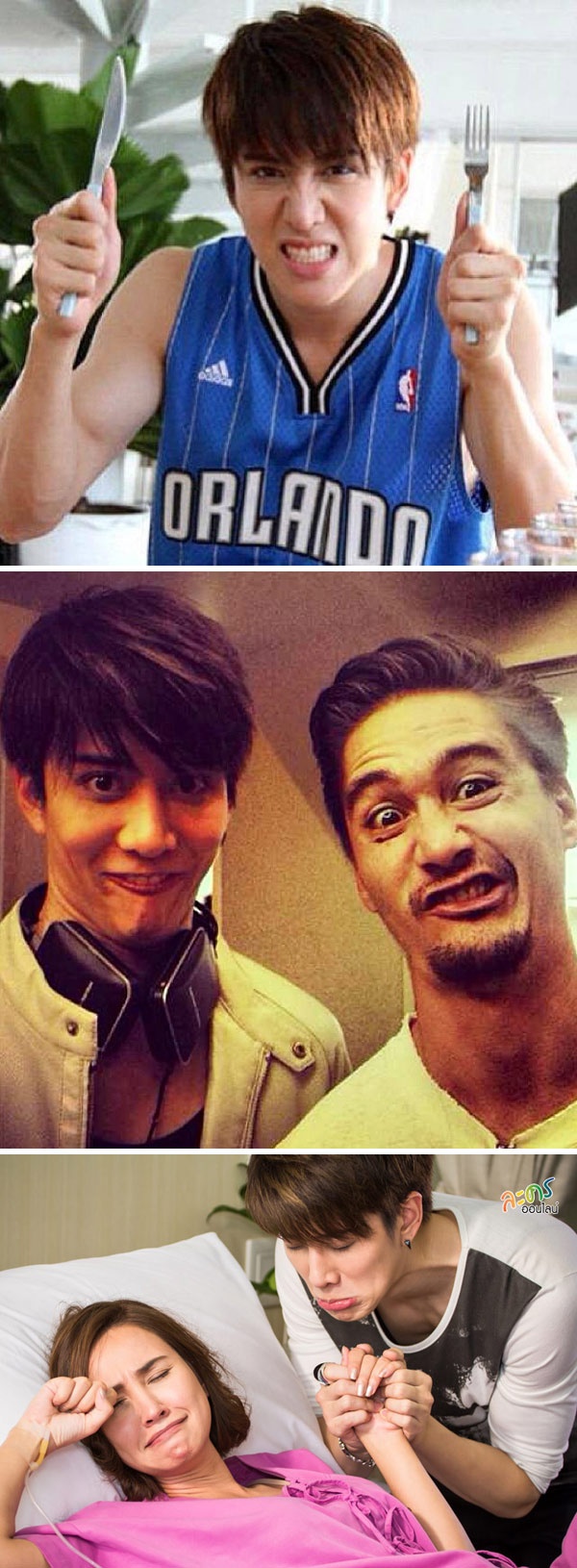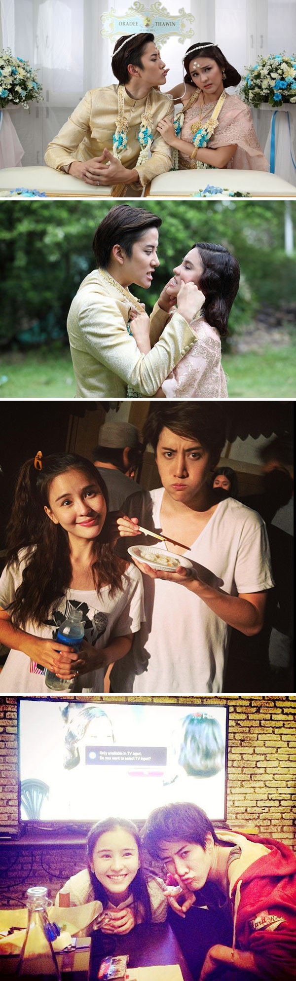 | Trên phim trường, Mike Pirath Nitipaisankul luôn thể hiện bản tính trẻ con của mình bằng việc chọc ghẹo cô bạn diễn Aom Sucharat Manaying, chụp lại những bức ảnh nhí nhảnh mà khán giả ít thấy trên phim. |