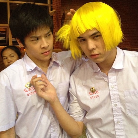 | Win: “Tóc mình quá nổi.” Phu: “Sao tóc cậu ấy có thể vàng như thế nhỉ?” |