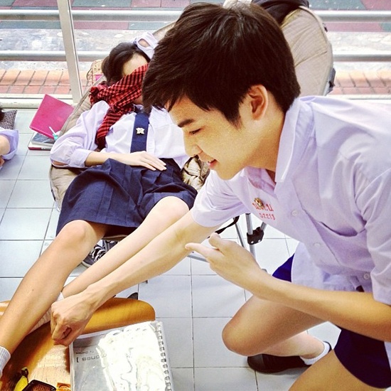| Phu tranh thủ…ngoáy mũi lớp trưởng Khwan. |