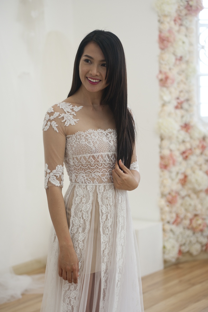 | Sáng 7/4, Trương Thị May có buổi thử trang phục áo dài cưới và váy cưới của NTK Thơ Đinh ngay tại showroom của anh. Trong show diễn lần này, NTK của áo dài ABC sẽ giới thiệu những mẫu áo dài cưới mới nhất mùa có gam màu trắng tinh khiết. Á hậu Trương Thị May sẽ đảm nhận vai trò vedette của màn diễn. |