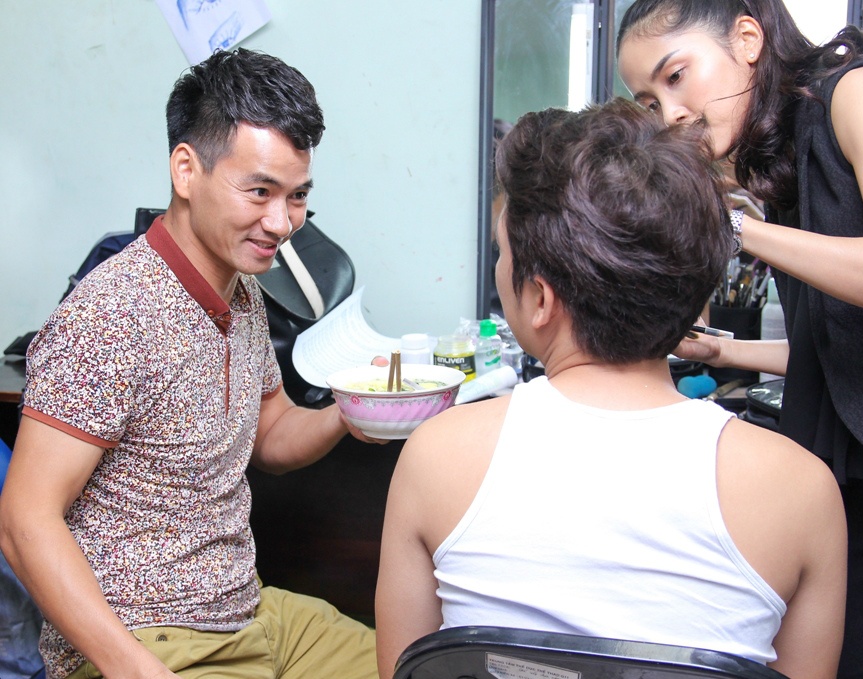 Xuân Bắc trong lúc ăn cũng tranh thủ trò chuyện khi Trường Giang đang make-up. MC của chương trình tiết lộ, mùa thứ 2 chương trình càng đặc sắc hơn nhờ nỗ lực làm việc của ê-kíp. |