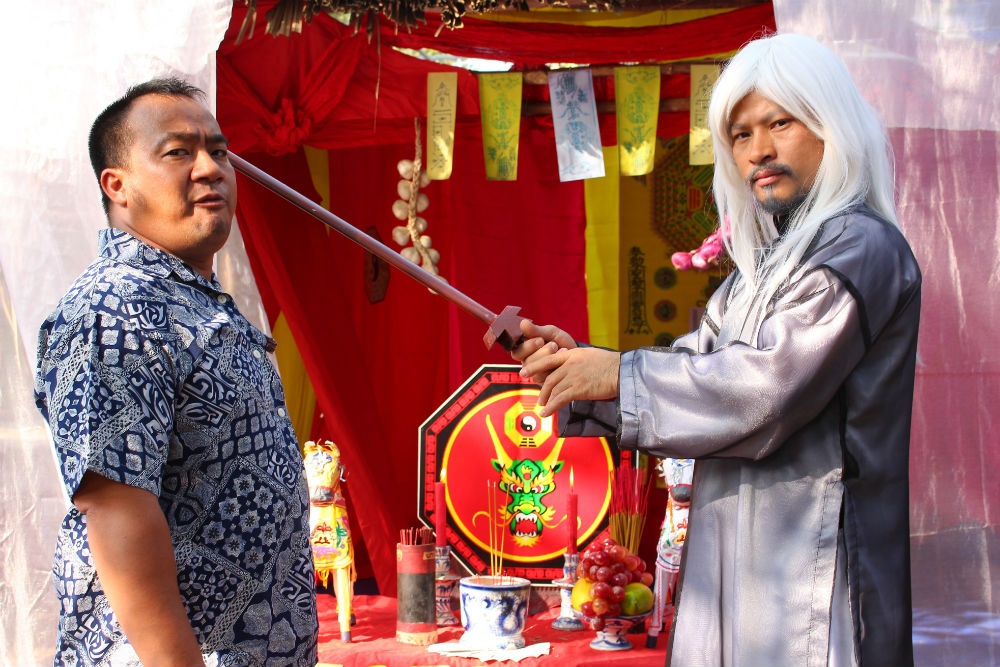 | Trong phim, nhân vật Thiên Hoàng do Hùng Cửu Long đóng nổi tiếng với tài đoán trước tương lai, nói chuyện với thần linh, hô mưa gọi gió. Ngược lại, "đối thủ" Thái Quân lại tự nhận mình có khả năng giao tiếp với người ở cõi âm và động vật. |