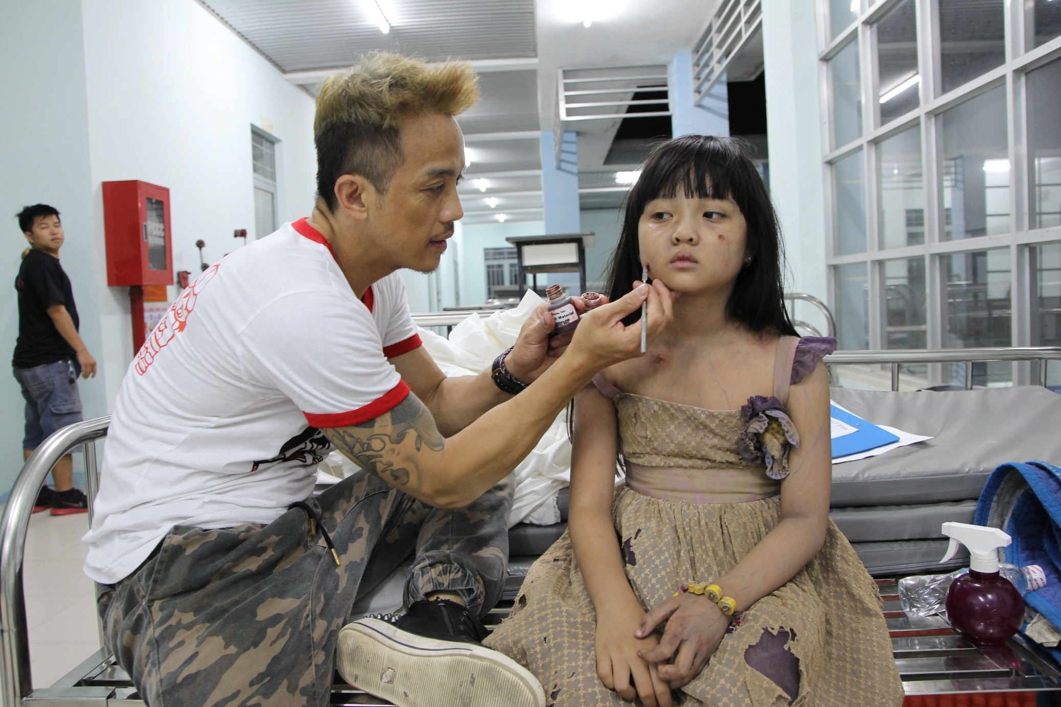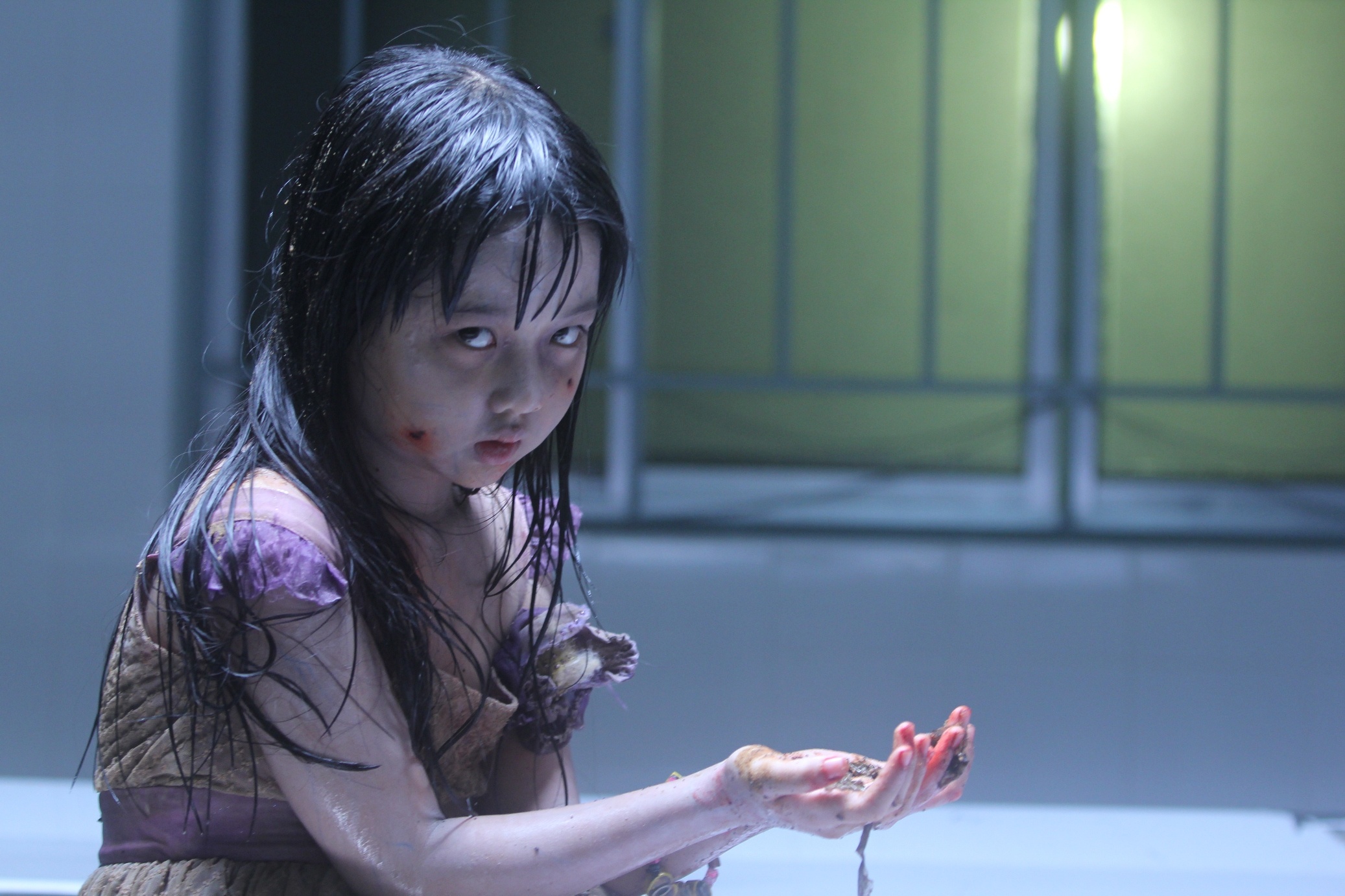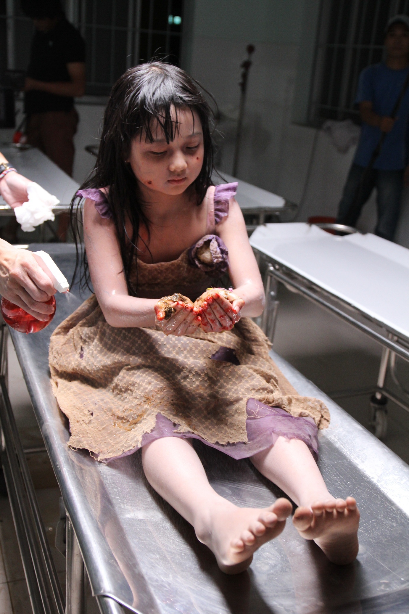 Bé Thanh Mỹ được chuyên gia hóa trang Gordan Bành biến thành một xác chết y như thật, mặc quần áo rách rưới với gương mặt trắng bệt và gân nổi khắp người. |
