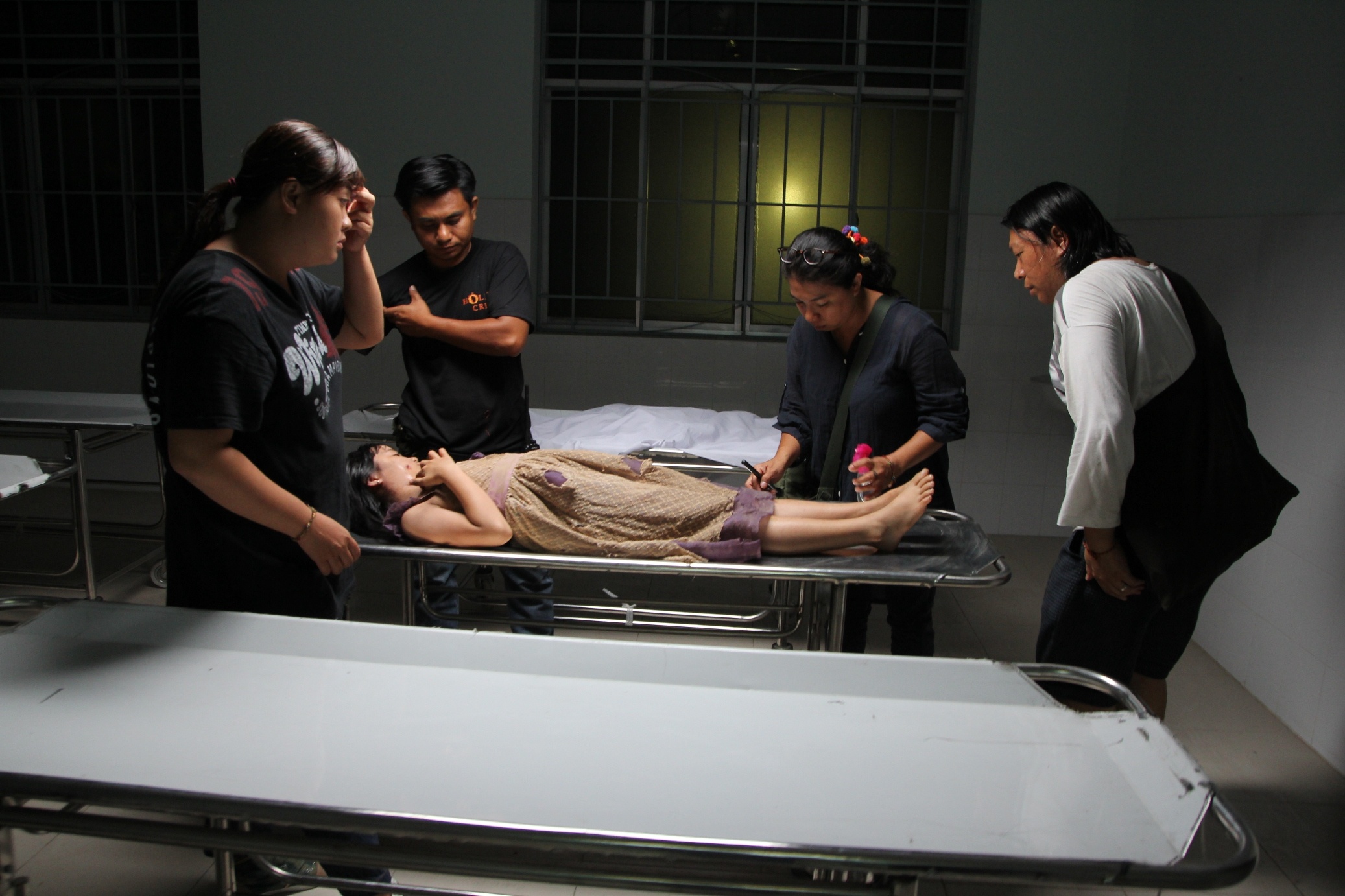 | Thanh Mỹ nằm trên một cái cáng được đặt trong nhà xác và phải tập nín thở khoảng 30s khi máy quay những cảnh cận mặt. |