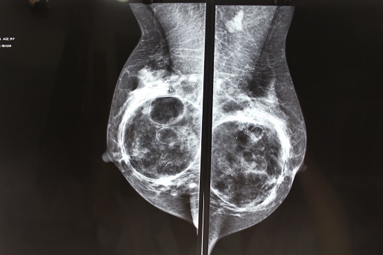 | Tuyến vú bị biến dạng với các cục, khối do tiêm filler. Ảnh: Bác sĩ cung cấp |