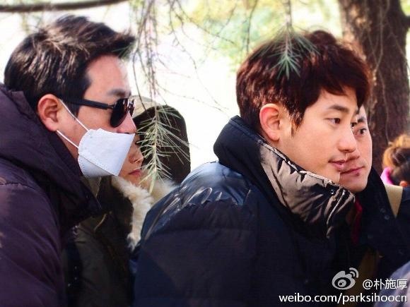 | Thậm chí trong ngày đầu năm mới, thấy những người hâm mộ đang chờ anh ở bên ngoài khách sạn, Park Shi Hoo đã bước ra khỏi phòng của mình để chụp ảnh với họ. Ảnh chụp với fan trong đêm giao thừa tại Trung Quốc cũng được Park Shi Hoo đăng trên trang cá nhân. |
