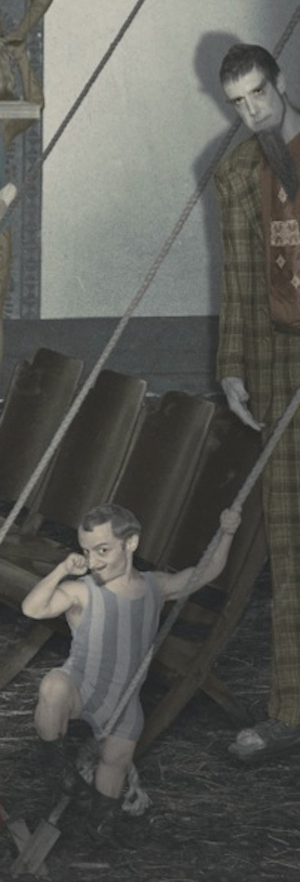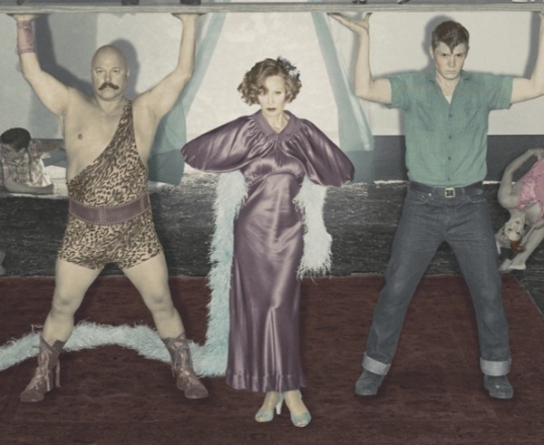| Jessica Lange (giữa) là người đứng đầu gánh xiếc và trông bà như bị cụt tay trên tấm poster. Hai bên là các lực sĩ do Michael Chiklis và Evan Peters thủ vai. Cả Jessica Lange và tài tử Evan Peters vốn từng xuất hiện trong cả ba mùa trước của American Horror Story. |