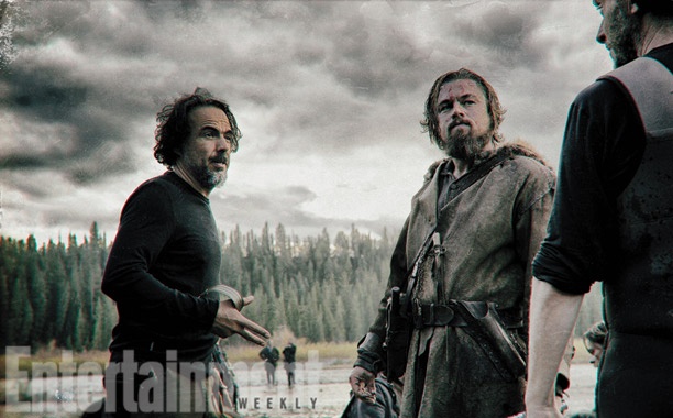 | Alejandro González Iñárritu và Leonardo DiCaprio trên trường quay của The Revenant. |