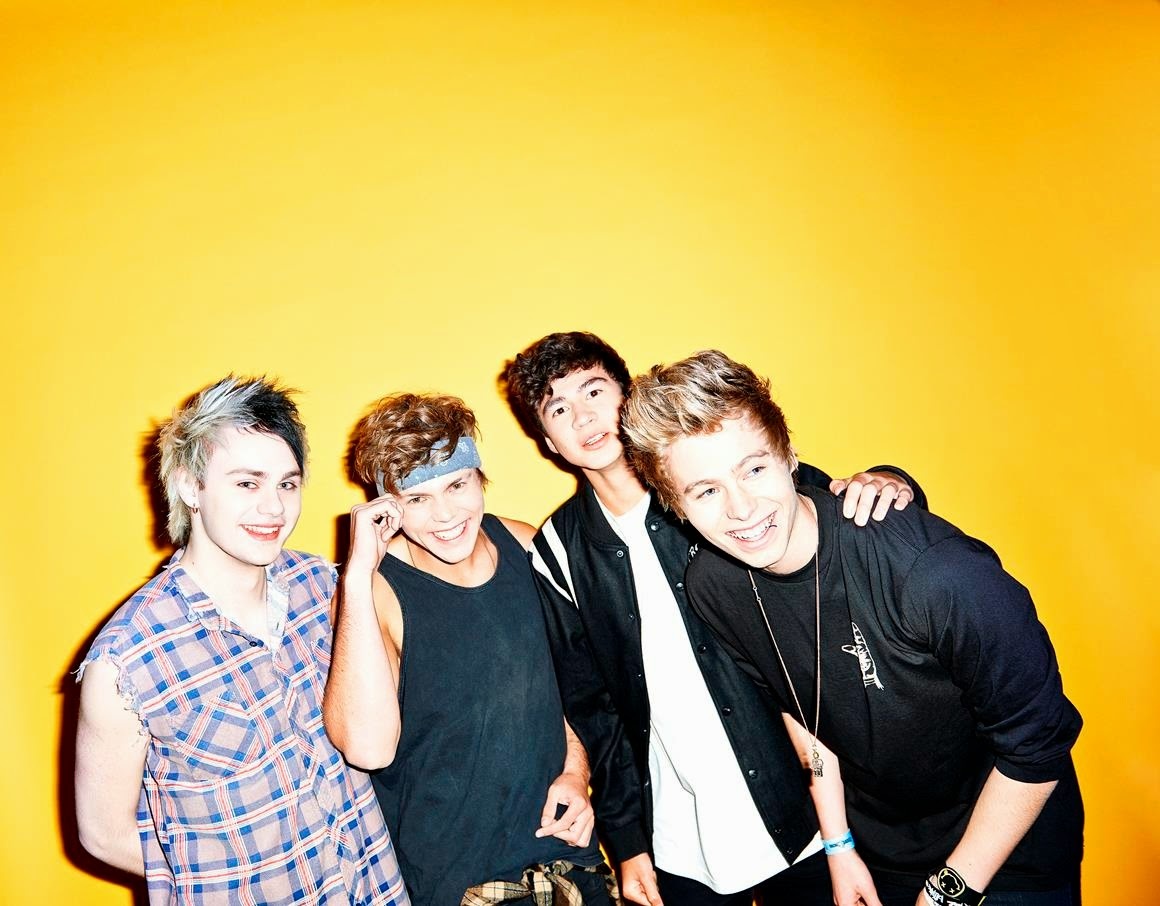 | Bốn thành viên của 5SOS, theo thứ tự từ trái sang: Calum Hood, Luke Hemmings, Ashton Irwin, Michael Clifford. |