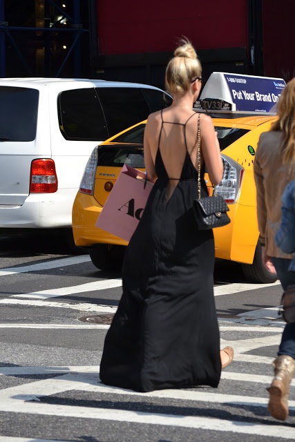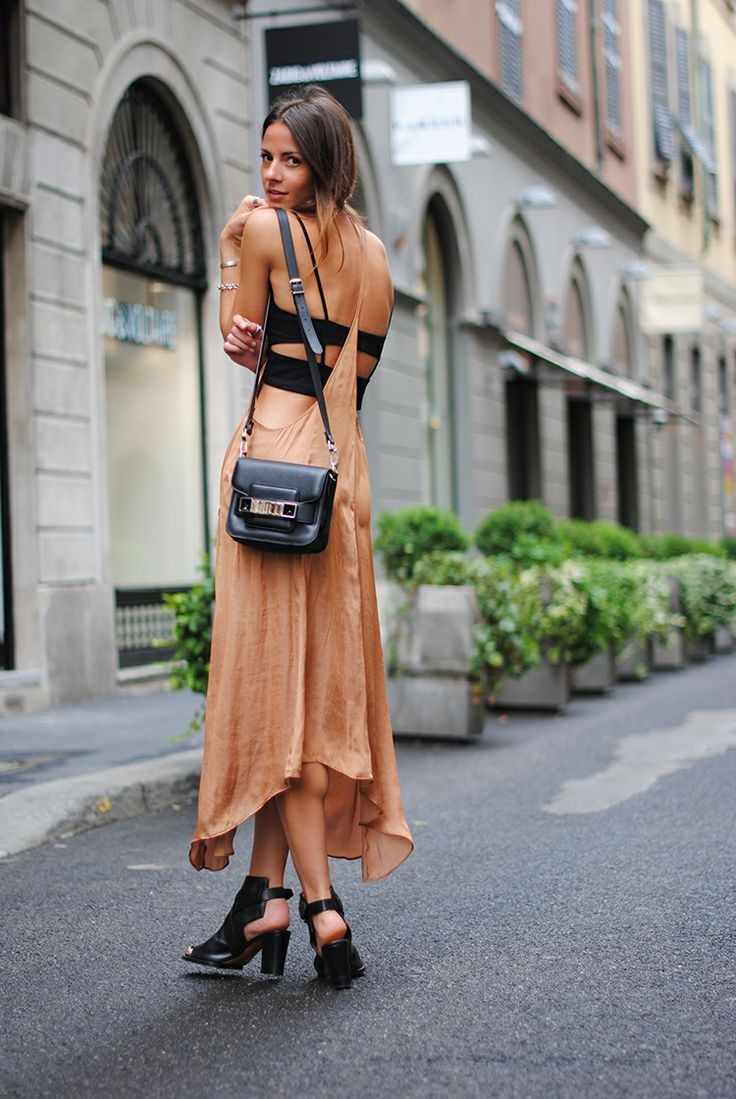 | Gợi ảm trên phố với đầm khoét lưng sâu. |