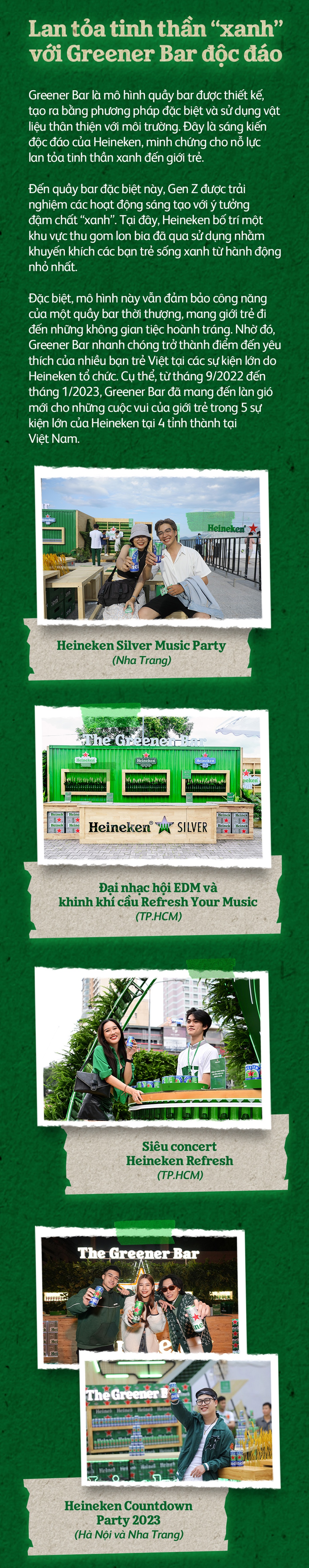 Không chỉ song hành với các cuộc vui, Heineken là người bạn đồng hành lý tưởng của những tín đồ sống xanh.