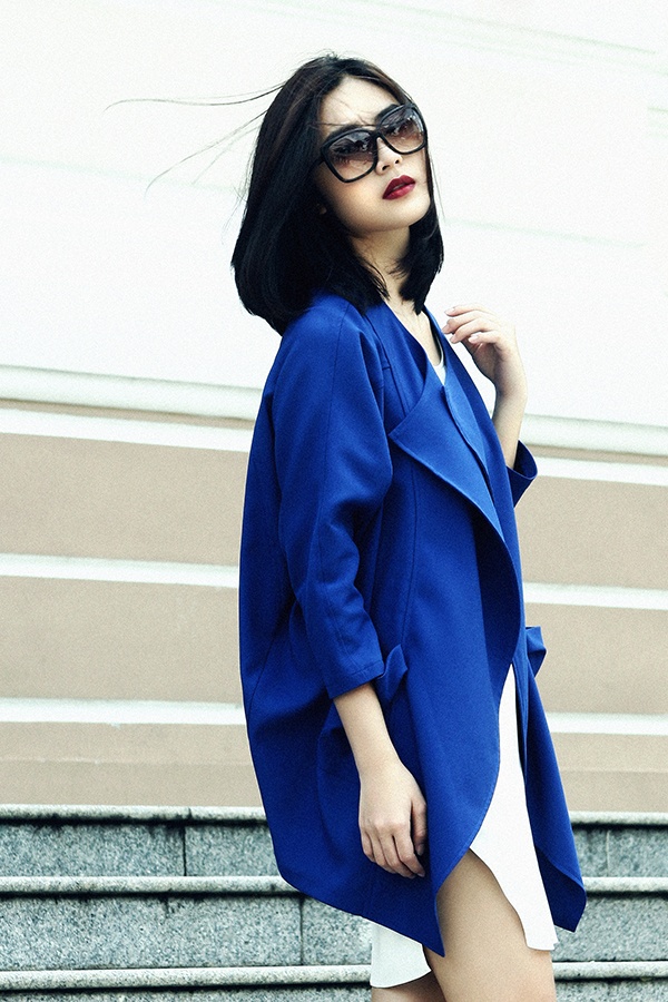 | Một trong những bí quyết của Helly Tống khi mặc đồ ra phố là tối giản về màu sắc của trang phục và phụ kiện kèm theo. Với set đồ này, Helly khoe chân thon trong mẫu trang phục giấu quần với áo vest cách điệu nhưng không tham dùng thêm phụ kiện ngoài chiếc kính mát sành điệu. |
