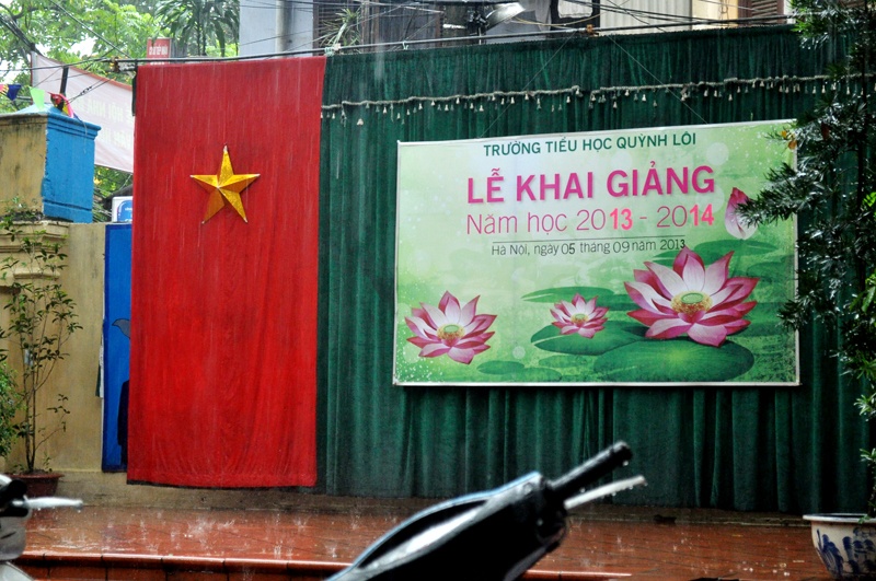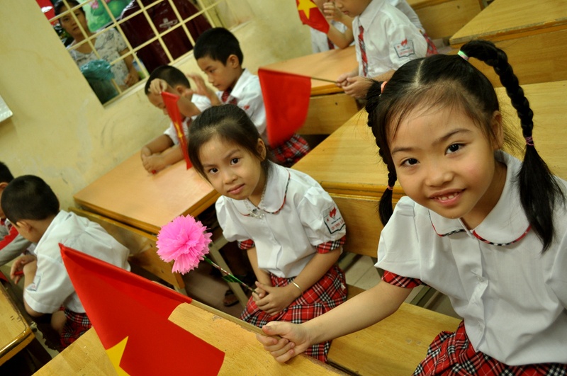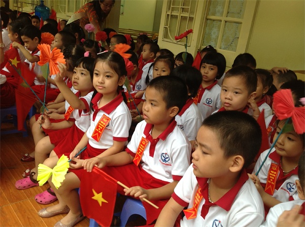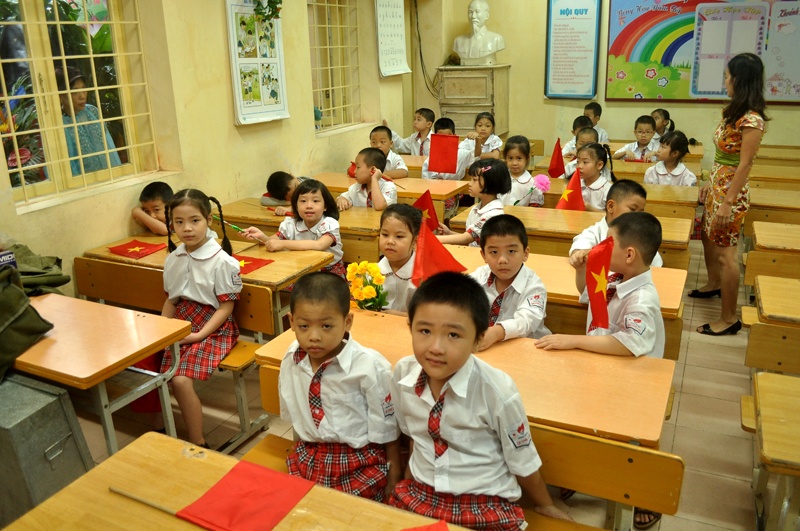 | Tại trường tiểu học Quỳnh Lôi (Hà Nội), từ sáng sớm các bậc phụ huynh đã tấp nập đưa con đi khai giảng. |