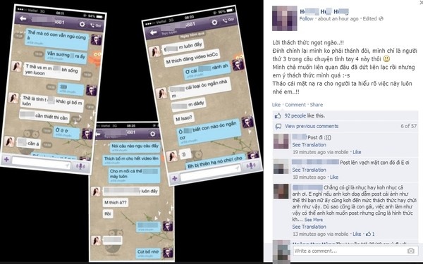 Những bức ảnh và dòng chia sẻ của H.H.H đang khiến cư dân mạng nháo nhào. Để xác thực thông tin, một số bạn còn đối chiếu số điện thoại của cô gái có tên K.T được đăng lên mạng vào tối qua với số điện thoại đang nhắn tin với H.H.H. Và bất ngờ là hai số điện thoại này trùng khớp với nhau.