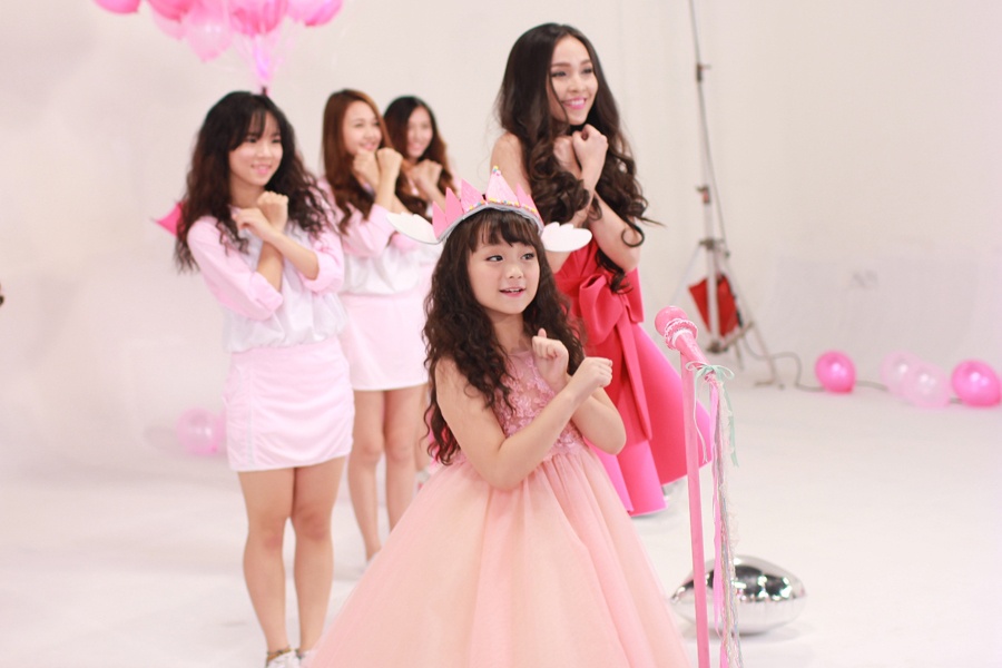 | Để thể hiện đúng tinh thần vui nhộn, Hiền Thục đã chọn màu hồng làm tông màu chủ đạo của MV. |