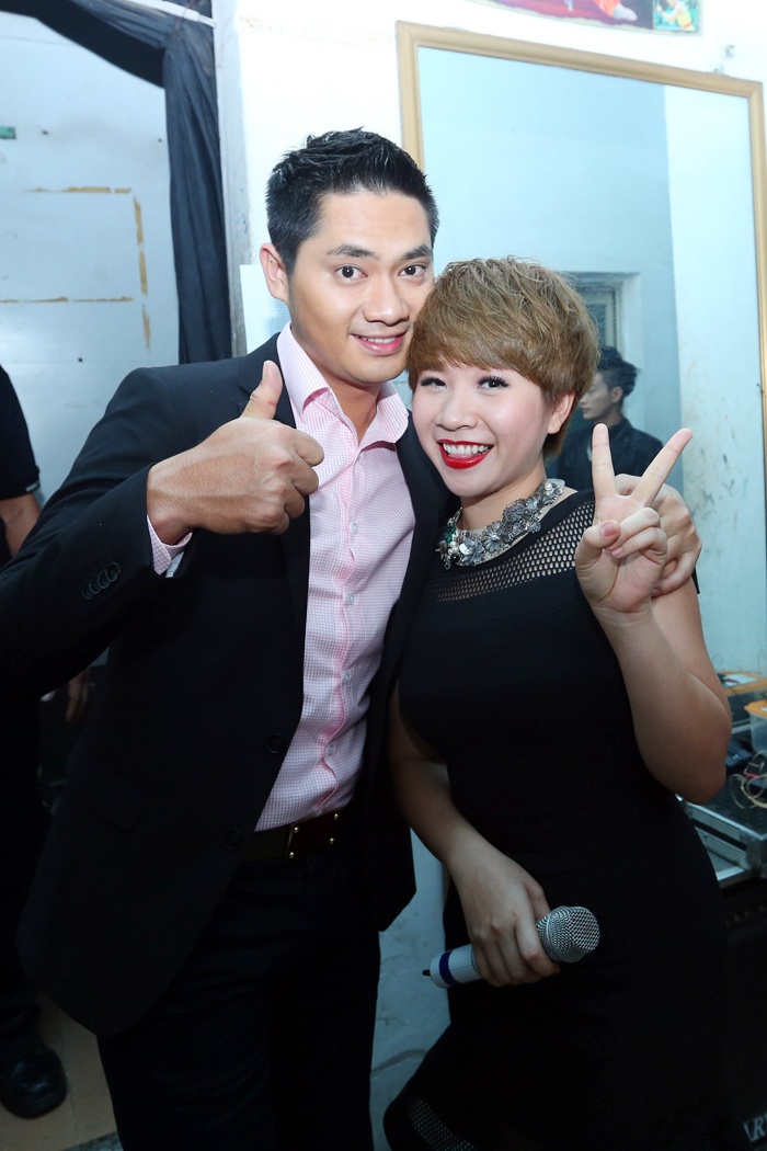 Hiền Thục thân thiết với MC Anh Quân sau cánh gà