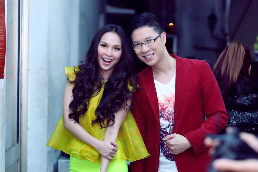 Anh Quân và Hiền Thục tranh thủ tạo dáng pose hình. Mặc dù mỗi người hoạt động ở một lĩnh vực song cả hai lại khá thân thiết ngoài đời. Mỗi lần gặp nhau, hai người lại chuyện trò rôm rả, hỏi thăm sức khoẻ và công việc của nhau.