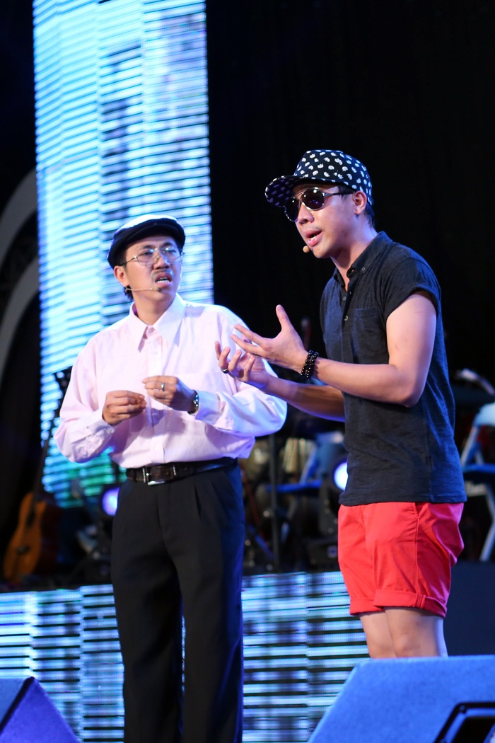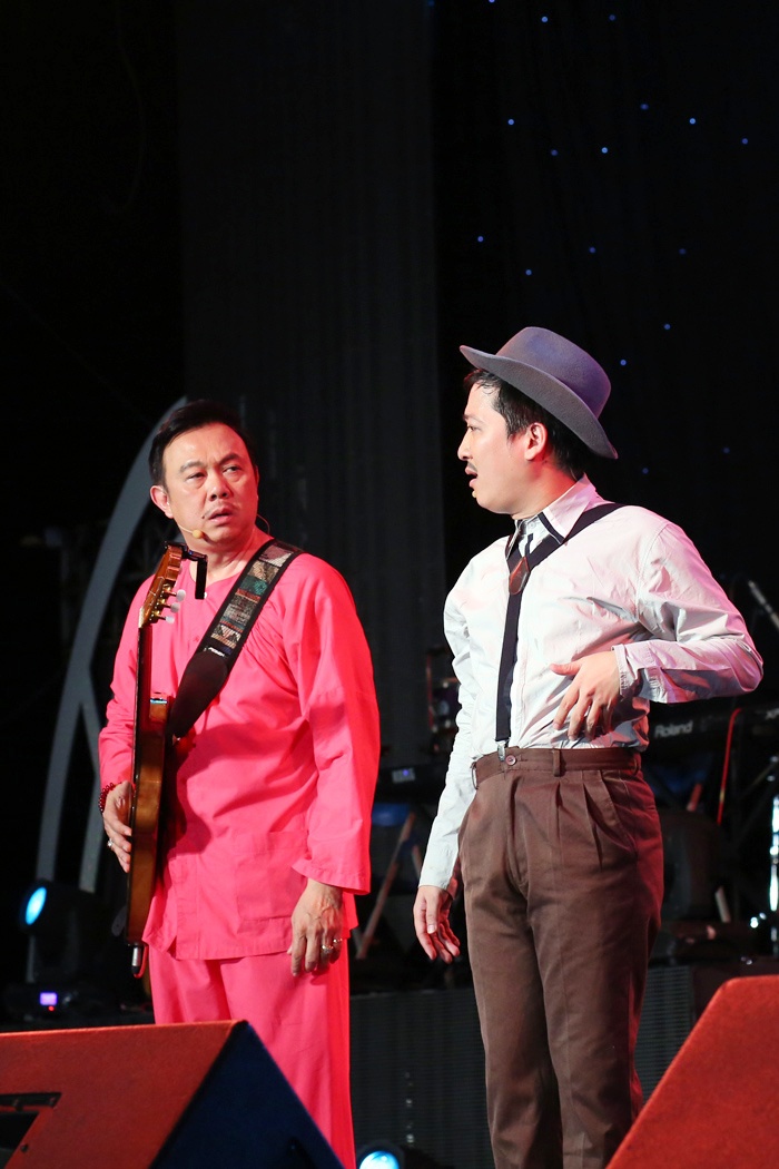 Danh hài Chí Tài và nghệ sĩ Trường Giang. Chương trình kéo dài từ 8h tối tới 1h sáng song các khán giả vẫn nán lại sân khấu tới những phút cuối cùng để ủng hộ cho các nghệ sĩ, đặc biệt là Phi Nhung và Mạnh Quỳnh.