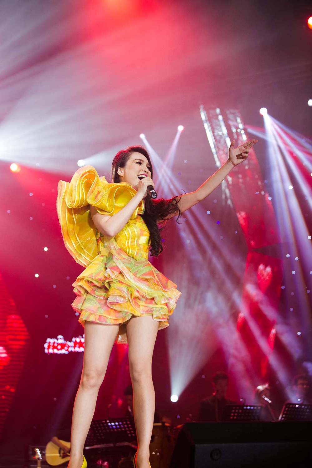 | Cô thể hiện hàng loạt những ca khúc sôi động như Câu chuyện tình tôi, Mơ một hạnh phúc, Dẫu có lỗi lầm, Một ngày ta xa nhau và khoe vũ đạo bốc lửa cùng vũ đoàn. |
