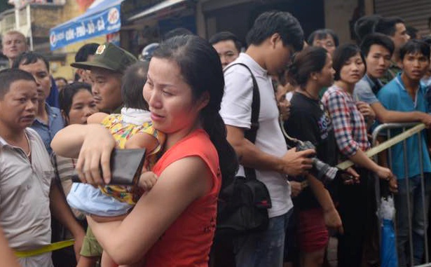Một phụ nữ cùng con nhỏ may mắn thoát nạn.