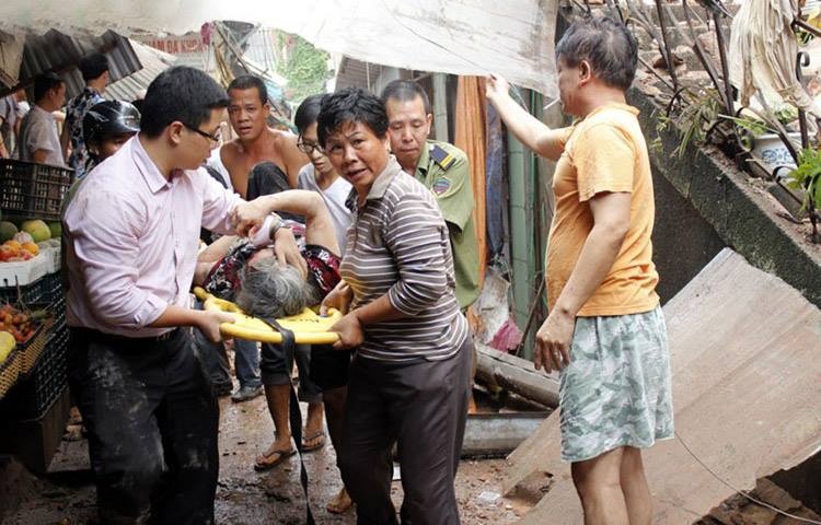 | Lần lượt từng nạn nhân được tìm thấy trong tình trạng chấn thương nặng, khênh ra ngoài. |