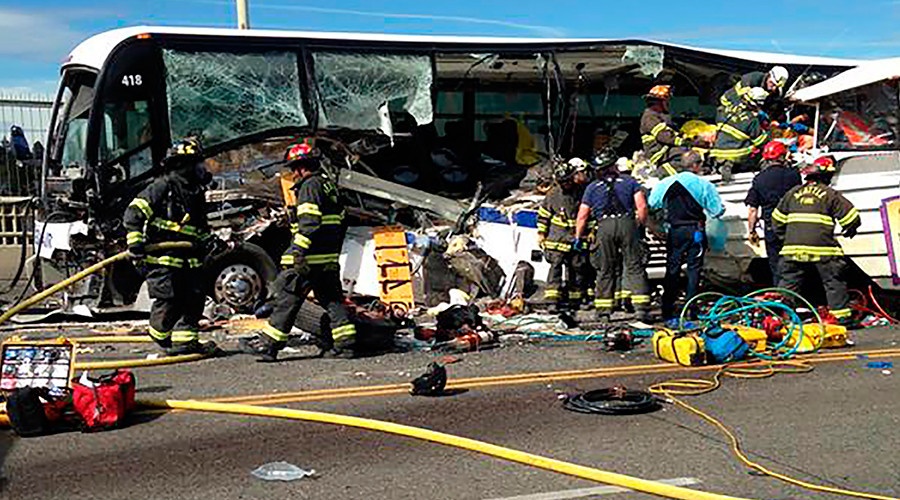 Hiện trường xe buýt chở sinh viên Việt Nam gặp nạn Một xe buýt chở hơn 50 người, trong đó có 29 sinh viên Việt Nam, gặp tai nạn tại thành phố Seattle, bang Washington, Mỹ hôm 24/9 khiết ít nhất 4 người thiệt mạng.