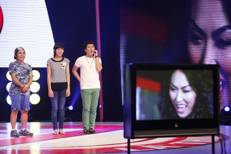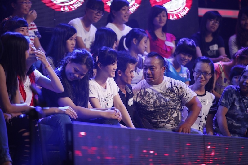 | Diễn viên Phương Bình (áo cam) tỏ ra không kém cạnh khi vài giây đầu, anh đã làm cho một khán giả nữ bật cười. Nhưng trong lần lựa chọn người chơi thứ 2, anh không thành công. |