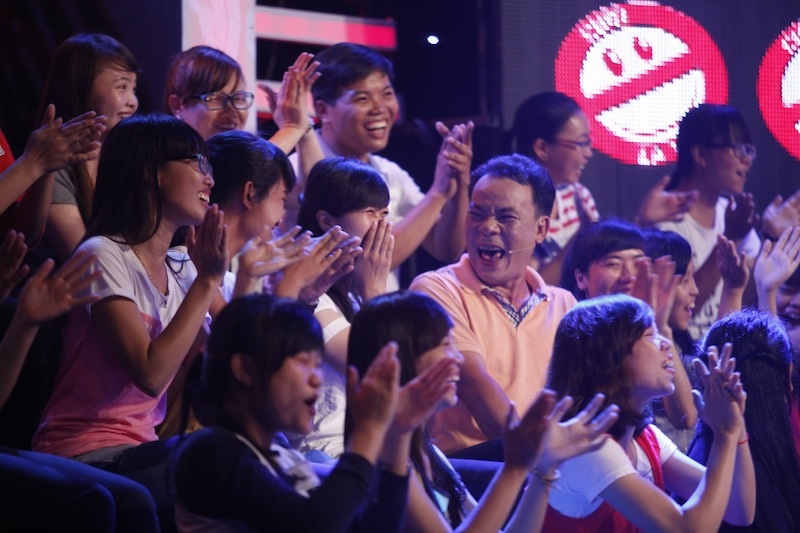 | Liên tục hát, làm trò, thổi kèn, cả 2 đội chơi cố gắng hoạt động nhiều hơn để khiến 10 vị khán giả cười theo hành động của mình. |