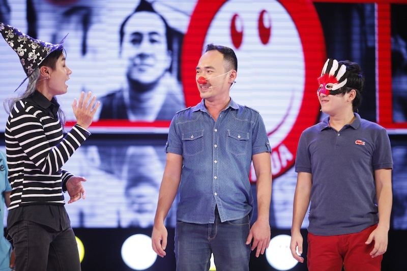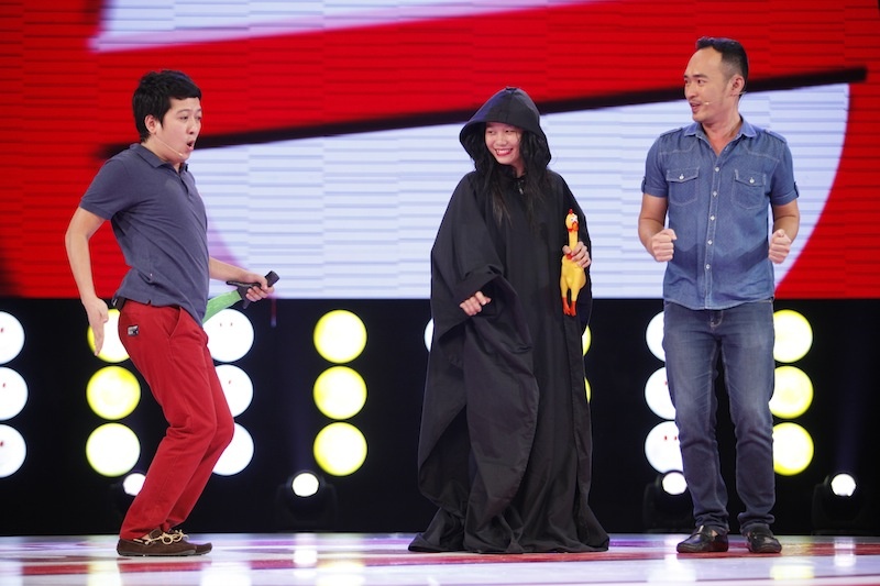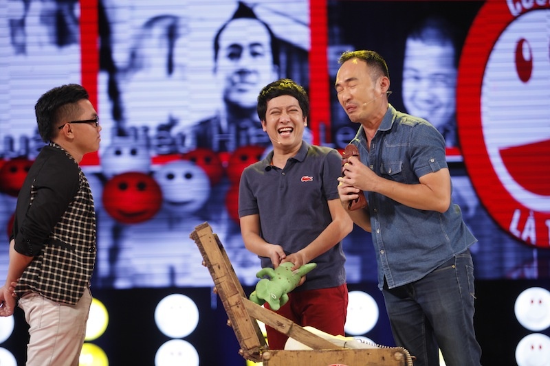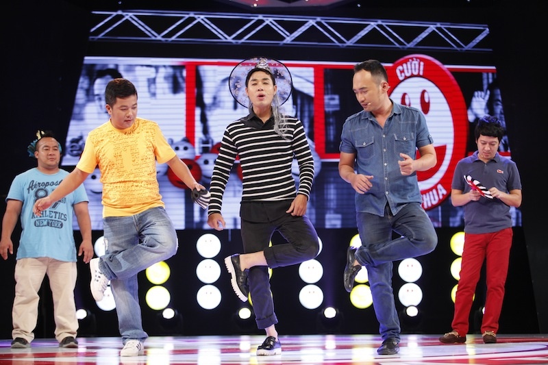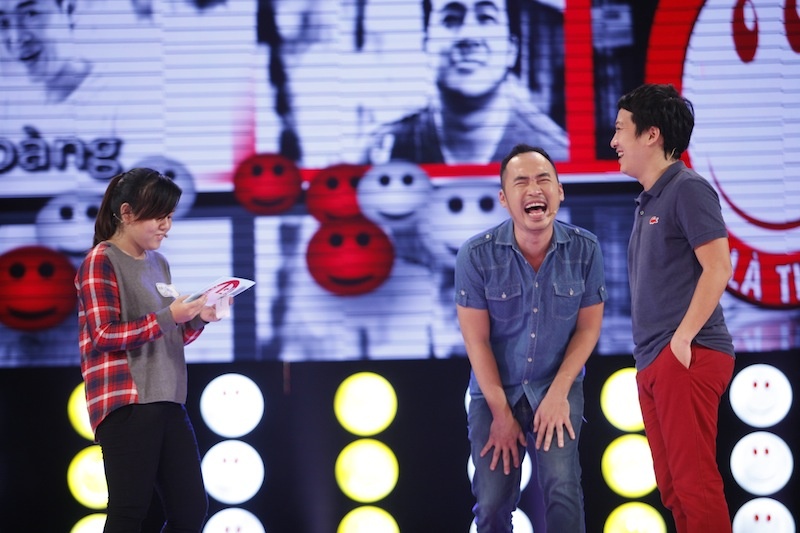 | Tận dụng mọi đạo cụ sẵn có, Trường Giang và Tiến Luật cũng có tiết mục hài kịch khá đặc sắc. Tuy nhiên, cặp đôi chỉ làm cho người bạn mới trong bệnh viện tâm thần cười 17 lần. |
