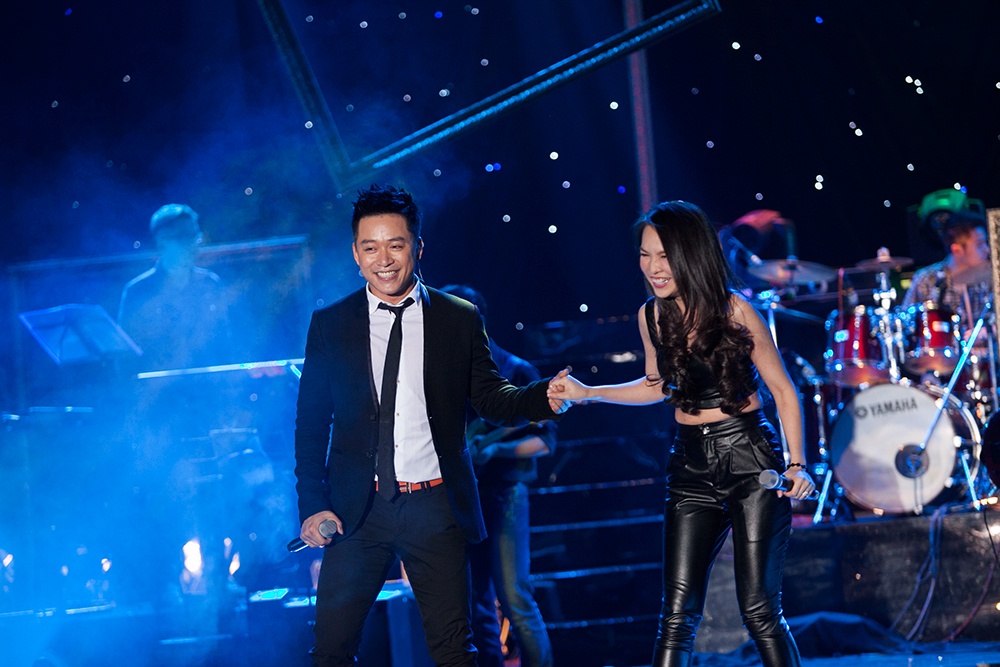 | Ngoài Phi Nhung, Tuấn Hưng còn có màn trình diễn ăn ý với nữ ca sĩ Hiền Thục. Cả hai khá tình cảm khi cùng nhau thể hiện những câu từ lãng mạn trong ca khúc của nhạc sĩ Hồ Hoài Anh, Dẫu có lỗi lầm. |