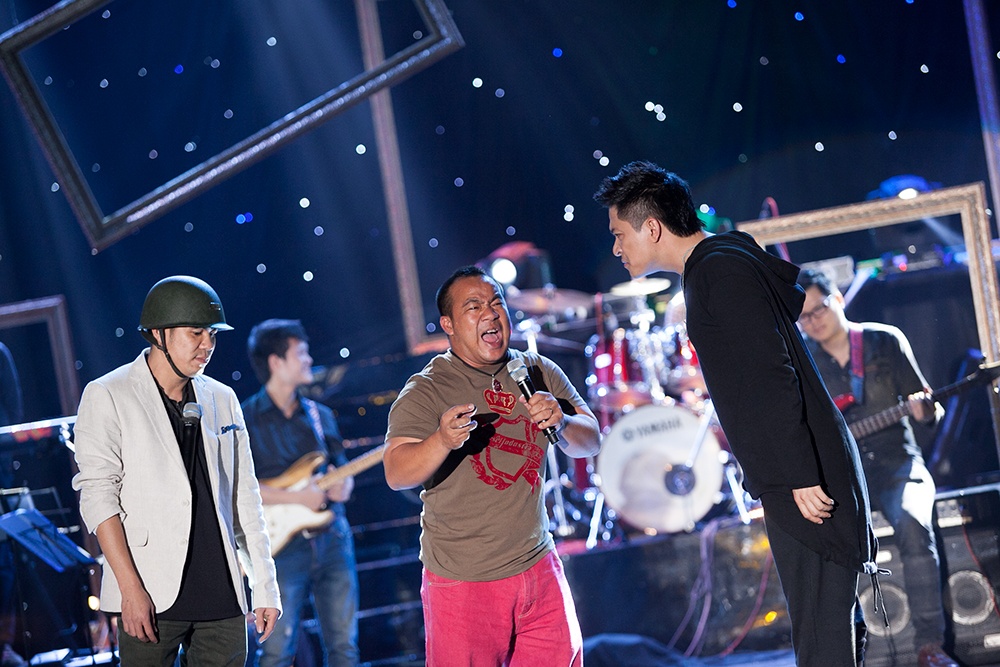 | Họ cùng ôn lại những kỷ niệm từ khi còn ở nhóm Quả Dưa Hấu dù thiếu vắng hai thành viên là Bằng Kiều và Tường Văn. |