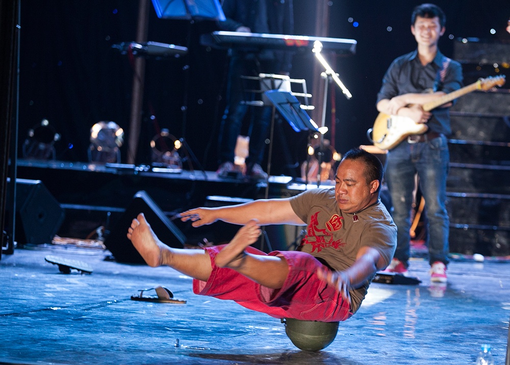 | Anh Hiều tận dụng chiếc mũ bảo hiểm làm đạo cụ để khoe tài hip hop. |