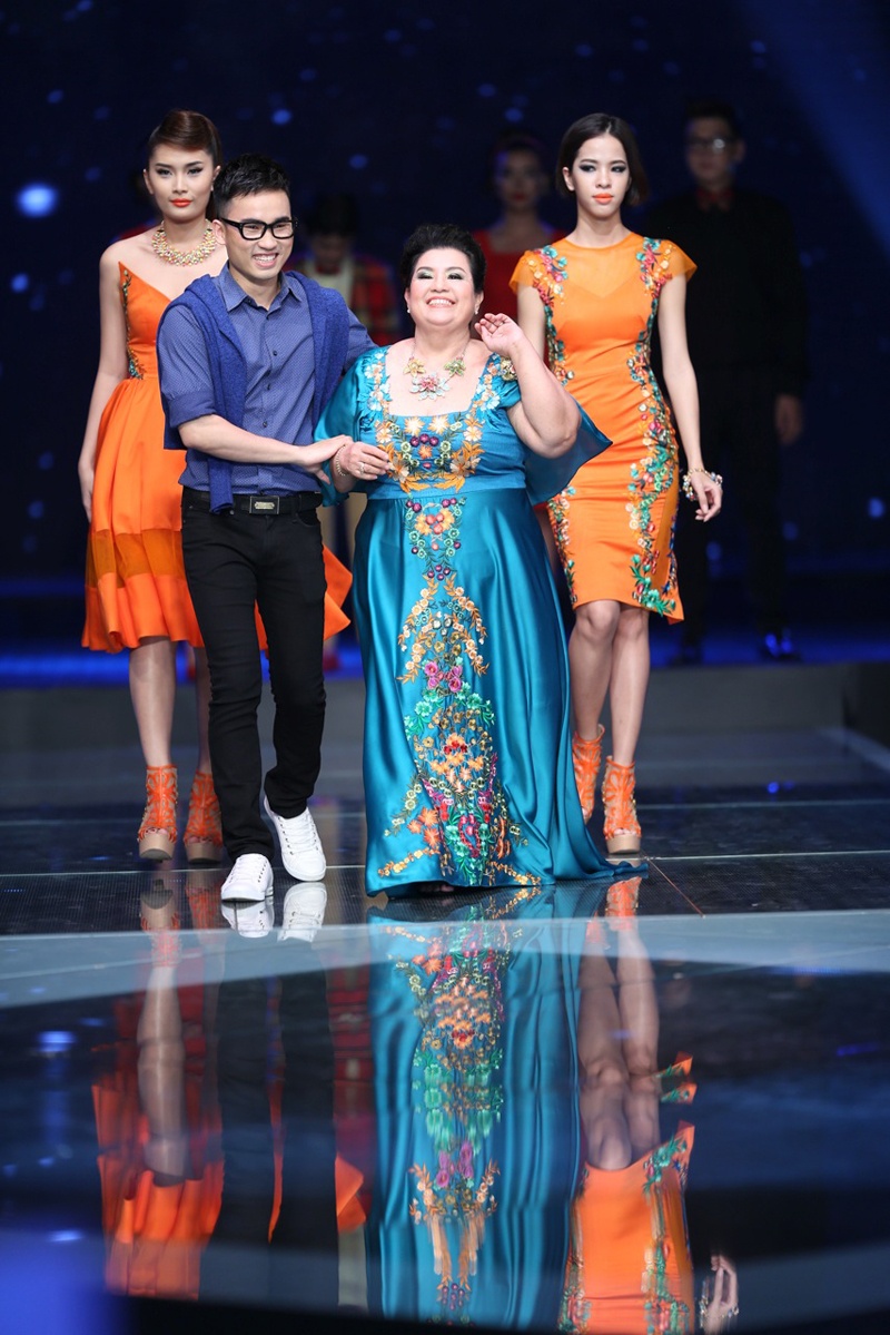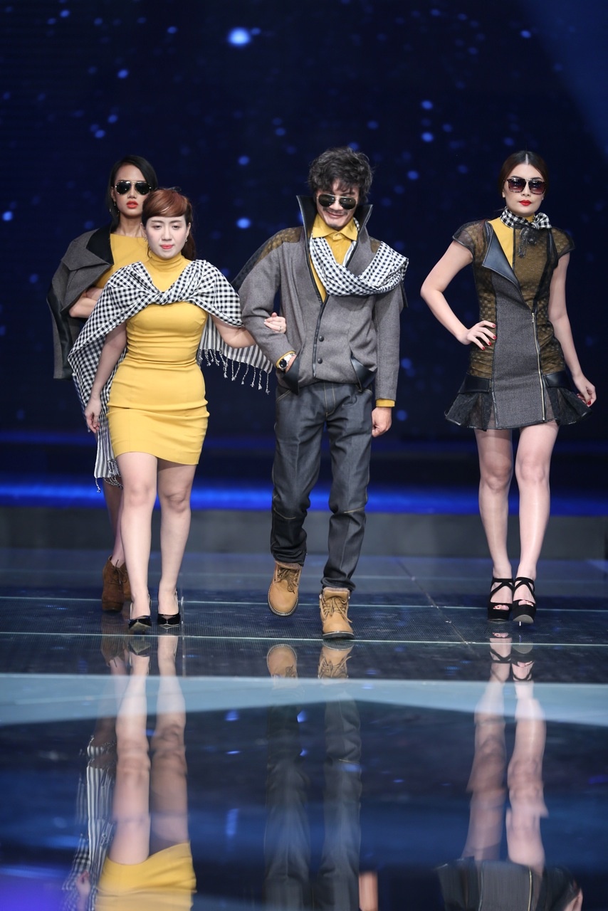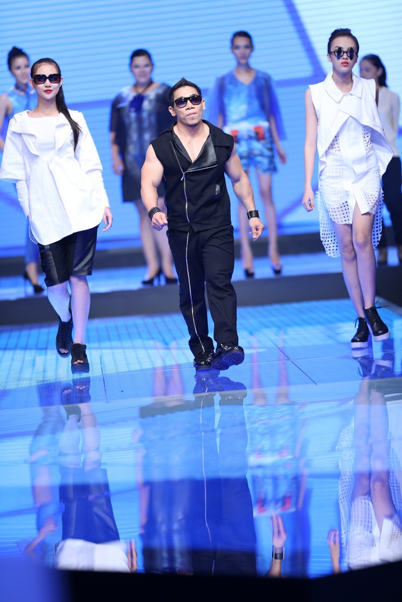 Văn Mách có màn diễn ấn tượng không thua kém các người đẹp trong phần trình diễn BST của Ngọc Tuyền.