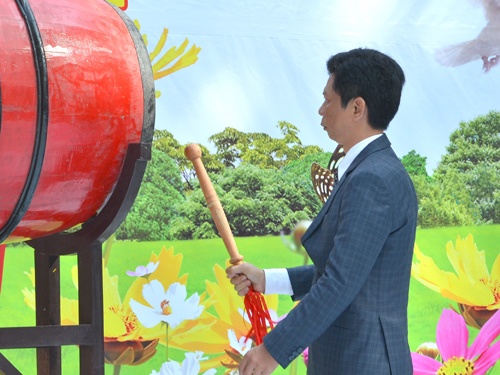 | Thầy Lâm Triều Nghi đánh trống khai giảng năm học 2013 - 2014 ở trường THPT chuyên Trần Đại Nghĩa. Ảnh: Người Lao Động |