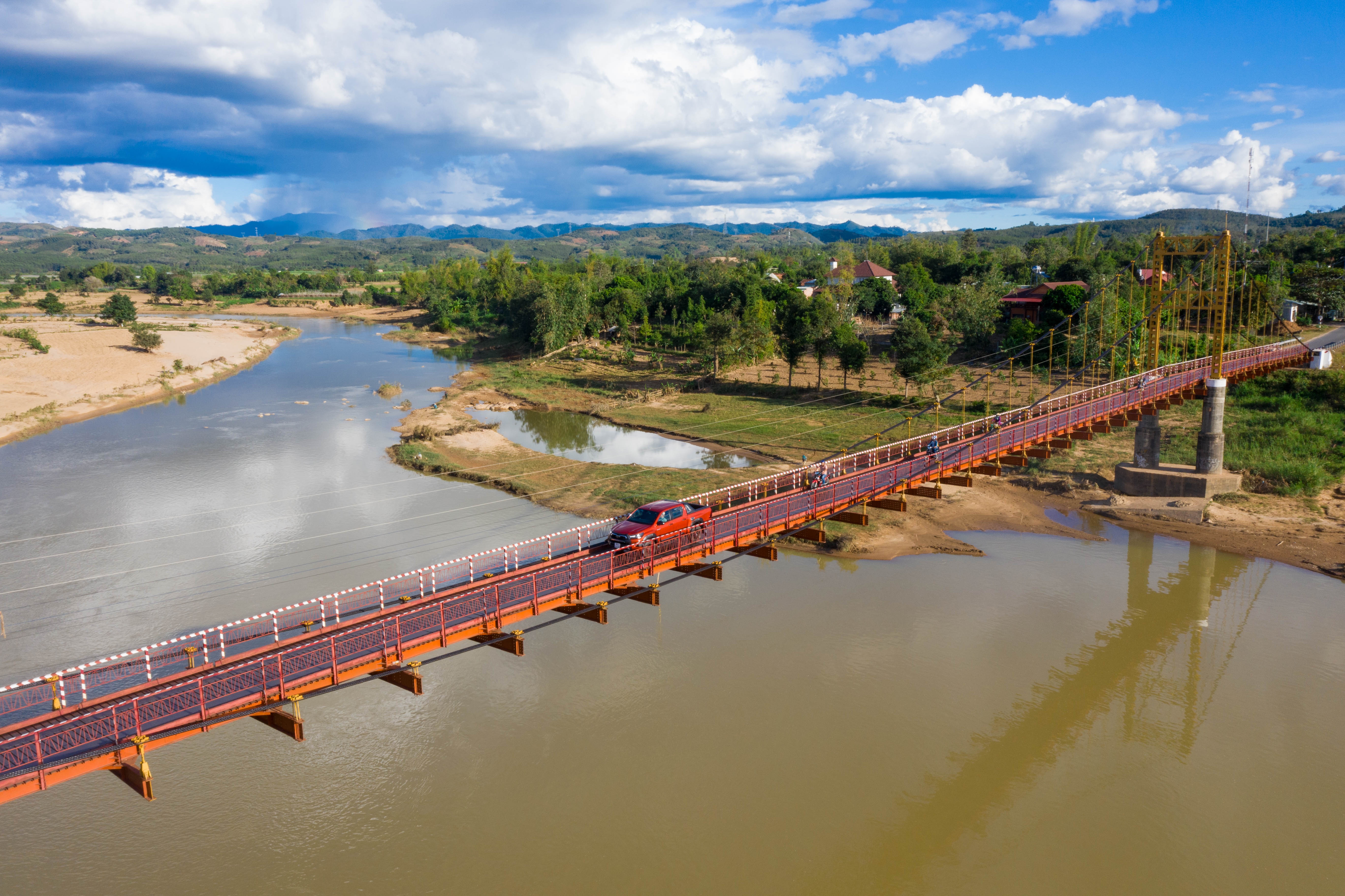 Tạm biệt những dãy núi lửa hùng vĩ, chúng tôi cùng Hilux tiếp tục hành trình khám phá ngôi làng cổ của người Ba Na và nhà rông lớn nhất Tây Nguyên. Để đến được ngôi làng Kon K’tu, ngôi làng cổ của người Ba Na, chúng tôi phải di chuyển qua cầu treo lớn nhất Tây Nguyên - Kon Klor, rồi đi theo con đường đất nhỏ chạy dọc sông Đắk Bla.