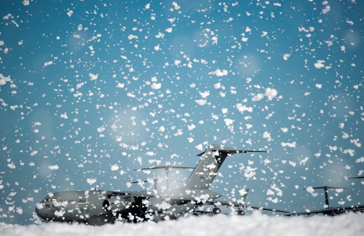 | Hạ sĩ Andrew Gravett đứng trên đầu của chiếc C-17 Globemaster III để kiểm tra bảo trì tại căn cứ quân sự Charleston ở South Carolina. Ảnh: Airmen. |