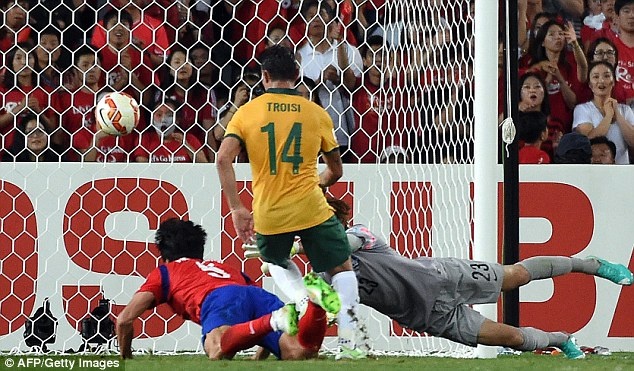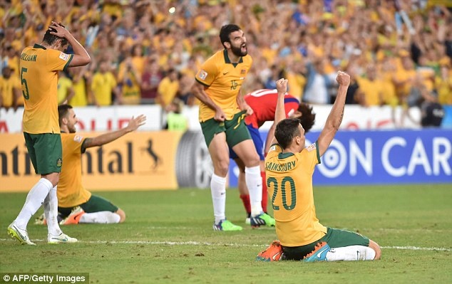 | Niềm vui của các cầu thủ Australia sau khi đánh bại đối thủ rất mạnh Hàn Quốc. |
