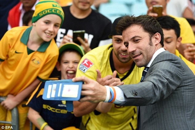| Tiền đạo lão tướng Del Piero cũng có mặt trong trận chung kết để cổ vũ cho Socceroos. |