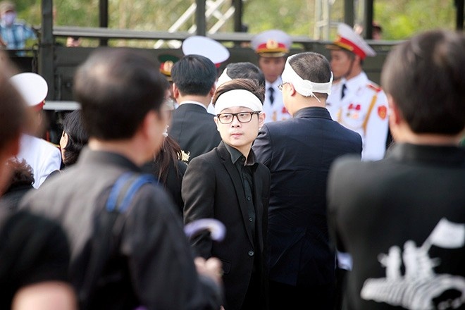 | Cháu nội Võ Thành Trung của Đại tướng Võ Nguyên Giáp tại nơi an táng. Ảnh: Lê Hiếu. |
